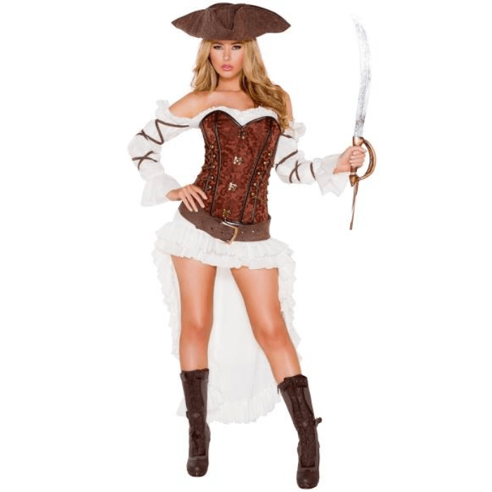 Fantasia Pirata Bege com Corset Marrom